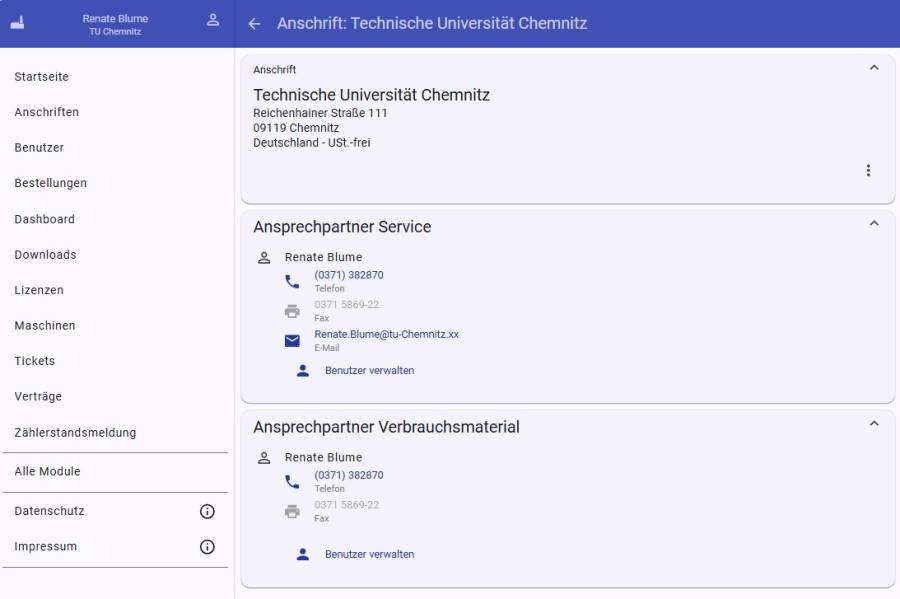 Verbrauchsmaterialien - Ansprechpartner für Materiallieferung, wird in Vorgang eingesetzt Anzeige als Verantwortlichen für Verbrauchsmaterial im Portal an Anschrift, an Gerät.