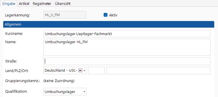 (Lagergruppierungen werden bei der Erstanlage per SQL-Befehl zugeordnet)