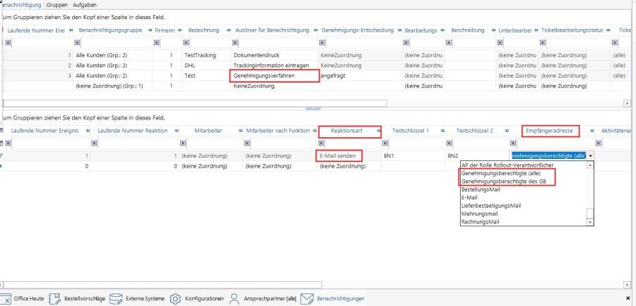 Im Benachrichtigungsmodul (BT) können nun Benachrichtigungen ausgelöst werden, wenn im Rahmen eines Genehmigungsverfahrens Statusänderungen an Genehmigungen auftreten.