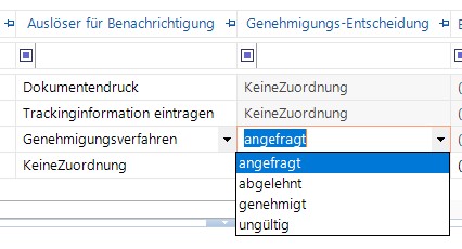 Für die Genehmigungs-Entscheidungen „angefragt“, „ungültig“, „abgelehnt“ und „genehmigt“ können entsprechende Reaktionen definiert werden.