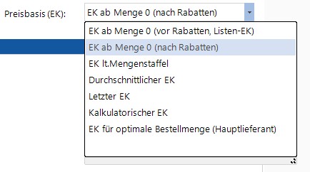 Ist der Haken gesetzt, kann der entsprechende EK-Preiskatalog ausgewählt werden.