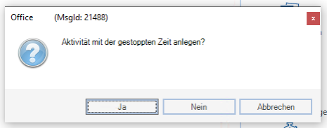 Über die Modulfunktion ‚Timer starten‘ kann manuell eine Stopp-Uhr gestartet werden, welche nach Beendigung der Zeit die Möglichkeit bietet, eine Aktivität anzulegen.