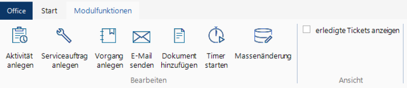Wird mit der Übernahme des Tickets in den Service-Auftrag das Ticket abgeschlossen, so wird im Ticket der Status auf erledigt gesetzt.