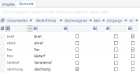 Wenn Sie eine Dokumentenart löschen, wird den Dokumenten, denen diese Art zugeordnet war, die Einstellung (keine Zuordnung) zugewiesen. Diese besitzt nicht das Zeichnungsverwaltung-Kennzeichen. Möglicherweise sehen Sie in so einem Fall nicht mehr alle Einstellungen des betroffenen Dokuments.